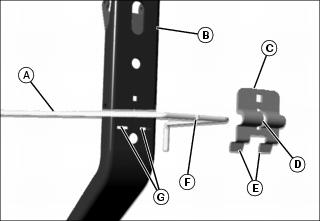 1. Fit tabs (E) on cargo mount bracket (C) into slots (G) on mounting post (B).