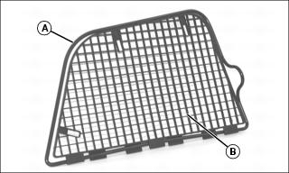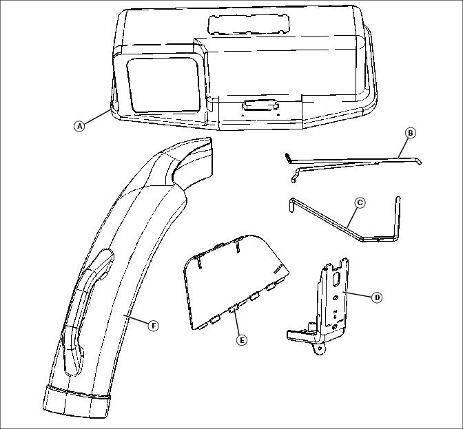 2. Insert bagger support rod (E) between cargo mount bracket and mounting post.