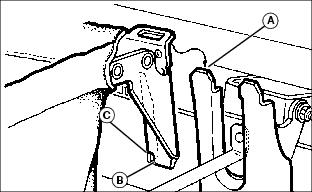 • Remove lock nut (A), flat washer (B) and hex bolt (C).