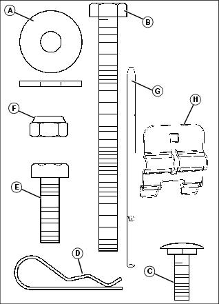3. Insert round head bolt (F) through cargo mount bracket and into hole (G) in mounting post.