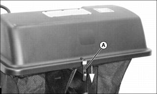 1. Close hopper top and fasten hood hold-down (A) over latch rod.