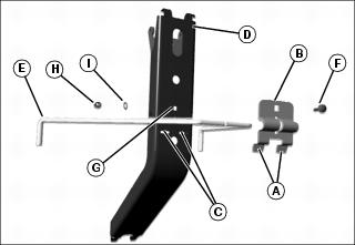 4. Secure bolt with M8 lock nut (H) and flat washer (I).