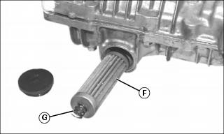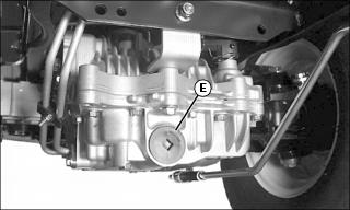 a. Remove cap (E) from front side of transaxle using a 3/8-inch ratchet.