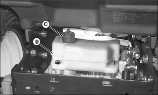 4. Clean area around transaxle fill cap (C) on transaxle oil reservoir (D).