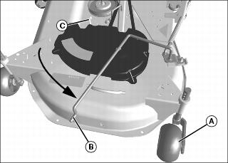 4. Rotate all mower anti-scalp wheels to allow mower deck to be rolled outward away from machine:
