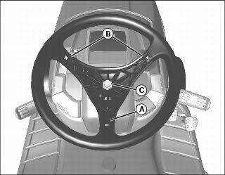 4. Install steering wheel onto steering shaft with one spindle (A) positioned at 180˚ at bottom of wheel and spindles (B) at approximately 45˚ at top of wheel.