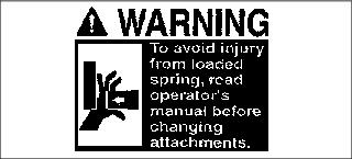 • To avoid injury from loaded spring, read operator’s manual before changing attachments.