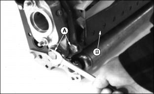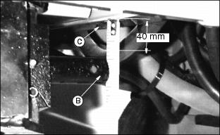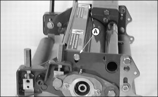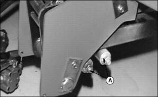 Adjusting Cutting Unit ShieldLoosen two bolts (A), one on each side, to adjust cutting unit shield. Maintain approximately 1 mm (0.04 in.) clearance between the shield and cutting blades. NOTE: Keeping the shield close to the blades improves the performance of the grass catcher in most conditions. |