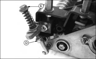 Operating MowerCheck Ground Conditionsˇ Clear mowing area of objects that might be thrown. Keep people and pets out of mowing area. ˇ Study mowing area. Set up safe mowing pattern. Do not mow under conditions where traction or stability is doubtful. ˇ First, test drive area with CUTTING UNITS OFF but lowered. Slow down when you travel over rough ground. Avoid Injury From Contacting BladesBEFORE YOU DISMOUNT TO UNPLUG OR ADJUST CUTTING UNITS: ˇ DISENGAGE reel drive by moving the mow/transport lever to the TRANSPORT position. ˇ LOWER cutting units to the ground. ˇ Wait for reels and all moving parts to STOP. BLOCKED OR STALLED CUTTING CYLINDERS: ˇ Keep all parts of the body away from the cutting edges. Residual hydraulic pressure in the system can cause cutting cylinder rotation when the blockage is released. Adjust Cutting HeightUse three-bolt adjusting gauge bar to: ˇ Set rear roller parallel to the bed knife cutting edge. ˇ Adjust the front roller parallel to the rear roller and adjust to desired cutting height. ˇ Set depth of penetration of blades that make up the GREENS AND TURF CONDITIONER (if so equipped). Adjust Rear Roller Mounting BracketsThe rear roller mounting brackets must be adjusted for the height of cut (HOC) range desired. 1. Choose TOP or BOTTOM bracket hole (A). 2. Choose TOP, MIDDLE, or BOTTOM frame plate hole (B). Adjust Rear RollerNOTE: This procedure is necessary only when the HOC range is changed. Check periodically to be sure roller is level. 1. Loosen lower rear roller support bolts (A) and remove upper bolt (B) and eccentric (C). 2. Align the upper holes in the roller support with the proper hole in the frame side plate as shown in the table on previous page. 3. Install bolt (B) and nut on the right side and tighten. 4. Install the eccentric (C) and nut on the left side. Do not tighten at this time. The punch mark (D) on the eccentric should be toward the rear of the cutting unit. 5. Position the gauge bar (E) 51 mm (2 in.) from the right end of bed knife (F). 6. Hook the center gauge screw (G) on the edge of knife and hold the end of the bar against the rear roller (H). 7. Turn the rear screw (I) in until it just touches the bed knife. 8. Move gauge bar to 51 mm (2 in.) from the left end of bed knife. 9. Adjust left end of roller up or down by turning the eccentric bolt (J) until the rear gauge screw just touches bed knife. 10. Tighten all rear roller support hardware and recheck using gauge bar. Adjust Height-Of-Cut
