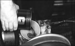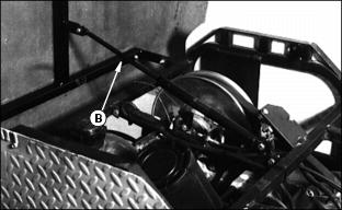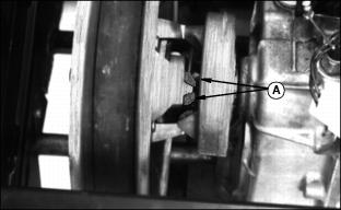 Service TransmissionAnti-Chatter Transmission OilNOTE: NOTE: Machine is filled with John Deere 85W140 API GL-5 Gear Oil transmission oil at the factory. DO NOT mix oils. These machines are equipped with a gear transmission. To avoid chatter, use only 85W140 API GL-5 Gear Oil transmission oil. John Deere 85W140 API GL-5 Gear Oil transmission oil is specially formulated to minimize clutch chatter, and to provide maximum protection against mechanical wear, and corrosion. Checking Belt ConditionCheck belt wear and condition. · Measure belt width. Belt must not be less than 27 mm (1-1/16 inch). Check drive belt condition. Belt must not be glazed or cracked. NOTE: If replacement is necessary see your John Deere Dealer, or the Technical Manual for this machine. Checking Drive Clutch Shoes1. Check clutch shoes for wear. 2. Replace shoes when worn to 1-2 mm (.040 to .080 in.) from ramp surface (A). NOTE: If replacement is necessary see your John Deere Dealer, or the Technical Manual for this machine. Checking Transaxle Oil1. Park machine on level surface. 2. Check oil level when engine is cold. 4. Clean the area around the check plug (A). 6. Oil should drip slightly from the plug hole (B). 7. If oil level is low, remove filler cap (C). Add 85W140 GL-5 Gear Oil or equivalent oil until you can see oil drip slightly from plug hole. 8. Install and tighten check plug (A). Changing Transaxle Oil1. Park machine on level surface. 3. After all oil is drained, install and tighten plug. 5. Clean the area around transaxle check plug. 6. Remove plug and filler cap (C).
