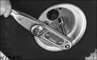 Service MiscellaneousService Tires SafelyChecking Tire Pressure2. Check tire pressure with an accurate low pressure gauge. Tightening Lug NutsTighten lug nuts to 80 N·m (60 ft.-lb): · After first 10 hours of operation · After first 20 hours of operation · Every 200 hours there after. Install lug nuts. Beveled sides must face inward. Tighten in sequence illustrated, alternately and evenly until recommended torque is reached. Refueling Machine
