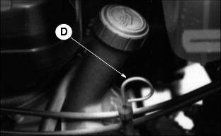 1. Park vehicle on a level surface. 3. Run engine a few minutes to warm oil. 5. Place oil drain pan under drain valve (A) and oil filter (B). Open drain valve and drain oil. 6. Remove filter using a filter wrench. Turn filter counterclockwise. 7. Apply a film of clean engine oil on seal of new filter. 8. Install filter. Turn filter until seal contacts mounting surface. Then turn filter BY HAND 1/2 turn more. 10. Remove filler cap (C). Add 1.4 liters (48 oz.) of oil. (See Engine Oil for correct oil.) 12. Start engine and run at slow speed for two minutes. 13. Check for leaks around filter and drain plug. 14. Stop engine. DO NOT add more engine oil to the crankcase. 15. After operating the engine, the oil filter will be filled and the engine oil level will be near the "H" mark ) on the dipstick (D) after adequate engine oil "drain down" time. Service Cooling System SafelyEngine CoolantUse ethylene glycol base coolant. These coolants usually have labels stating "For Automobile and Light Duty Service." These products are also often labeled for use in aluminum engines. Check container label before using. Engine Coolant (Continued)