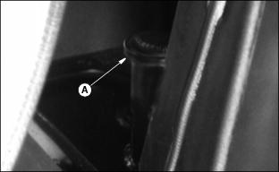 NOTE: Drain plug is located left rear of machine below 2. Remove plug (A) and drain oil. into a drain pan with at least a 15.1 L (4 gal) capacity.