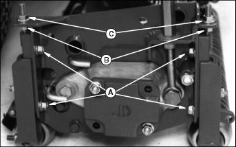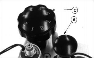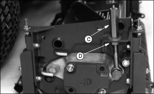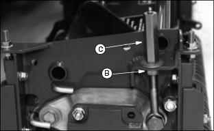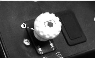 12. Disengage the PTO switch and shut off the engine. Turn flow control knob (C) fully counterclockwise. 13. Push forward/reverse knob (A) down to resume normal operation.