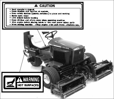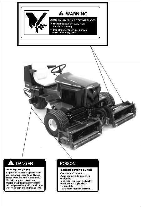 Safety SignsSafety-Alert SymbolRead and recognize safety information. Be alert to the potential for personal injury when you see this safety-alert symbol. The words DANGER, WARNING, and CAUTION are used with this safety-alert symbol. DANGER identifies the most serious hazards. Machine Safety LabelsMachine Safety Labels (Continued) |