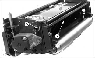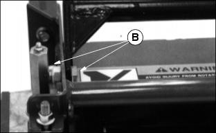 When cutting grass taller than approximately 38 mm (1-1/2 in.), the front roller tends to knock down grass affecting the quality of cut. In these conditions, it may be necessary to operate with cutting units in fixed position without a roller. NOTE: The fixed position is recommended for smooth areas only, such as athletic fields, level parks, etc. 2. Remove scraper, if equipped. 3. Install 1/2 x 1 in. cap screw, and nut, from bag of hardware supplied with machine, to fixed position (B) on both sides of all three cutting units. Cutting Shorter GrassWhen cutting grass under approximately 38 mm (1-1/2 in.) Place the cutting unit in the FLOATING position. 2. Install scraper, if equipped. (See instruction sheet provided for scraper kit).