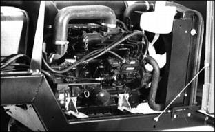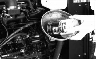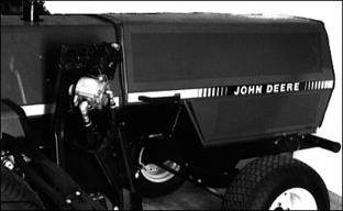 Engine OilUse oil viscosity based on the expected air temperature range during the period between oil changes. The following oil is preferred: The following oils are also recommended: · John Deere TORQ-GARD SUPREME® Other oils may be used if they meet one of the following: · API Service Classification CE · API Service Classification CD If John Deere PLUS-50 engine oil and a John Deere oil filter are used, the oil and filter service interval may be extended by 50 hours. If diesel fuel exceeding 0.5% sulfur content is used, reduce the service interval for engine oil and filter by 50%. Oils meeting Military Specification MIL-L-46167B may be used as arctic oils. Raising Hood1. Stop engine. Lock parking brake. Checking Engine Oil Level