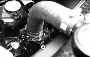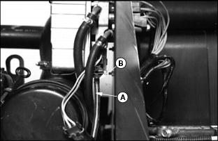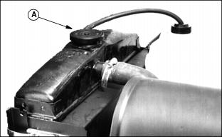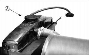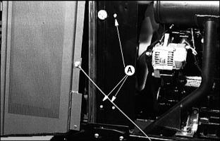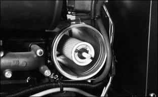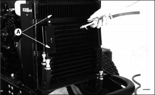 1. Fill cooling system. For cold weather, use a solution of only ethylene glycol antifreeze (without a stop-leak additive) and clean, soft water. A chart on the antifreeze container tells how much antifreeze to use for the freeze protection needed in your area. 3. Run engine until operating temperature is reached. 4. Stop engine. After engine cools, check coolant level and add if necessary. 5. Check condition of coolant system hoses. Install new hoses periodically. Tighten hose clamps regularly. Cleaning Oil CoolersNOTE: Hood removed for illustration. Clean oil cooler fins (A) using compressed air or a brush. Do not bend fins. Replacing Air Cleaner Primary Element3. Remove wing nut and element. 4. Install new element, wing nut, and cover. Replacing Air Cleaner Secondary Element2. Remove primary element. See Replacing Air Cleaner Primary Element in this section. 3. Remove wing nut and element. 4. Clean the inside of the air cleaner housing and cover.