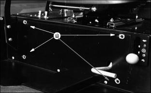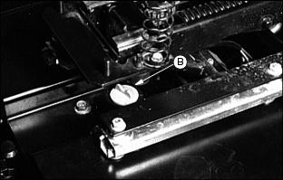 7. Hold adjustment and tighten locking cap screw (B). Make sure adjustment did not change.