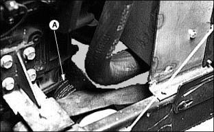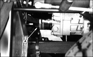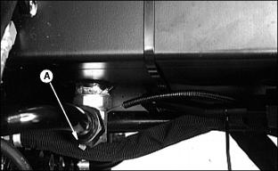 1. With travel pedals in neutral position, check length of return spring (A).