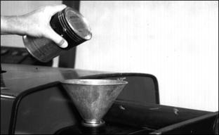 Service TransmissionAnti-Chatter Transmission OilNOTE: NOTE: Tractor is filled with John Deere Low Viscosity HY-GARDTM (J20D) transmission oil at the factory. DO NOT mix oils. These tractors are equipped with a hydraulic wet disc clutch transmission. To avoid chatter, use only Low Viscosity HY-GARD Ž (J20D) transmission oil. DO NOT use type "F" automatic transmission fluid. John Deere Low Viscosity HY-GARDŽ (J20D) transmission oil is specially formulated to minimize clutch chatter, and to provide maximum protection against mechanical wear, corrosion, and foaming. Transmission and Hydraulic OilUse oil viscosity based on the expected air temperature range during the period between oil changes. John Deere HY-GARDŽ is recommended. Other oils may be used if they meet the following: John Deere All-Weather Hydrostatic Fluid also may be used. Removing Service DoorsRaise latch (A) or turn tabs (B) and remove doors. Cleaning Hydraulic System BreatherChecking Traction Unit Hydrostatic Transaxle/Hydraulic System Level2. Lower cutting units to ground. 4. Check oil level when oil is cold. 5. Remove dipstick (A). Wipe with a clean rag. Install dipstick. 6. If oil level is low, remove cap (B) and add John Deere HY-GARDŽ Transmission/Hydraulic Oil or an equivalent oil meeting John Deere J20C specifications. 7. Do not add oil above FULL mark.