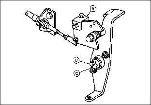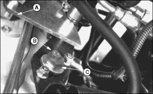6. Turn eccentric nut (C) forward and backward until drive wheels stop turning. Turning eccentric nut will move transmission cam (A).