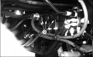 1. Remove 6 cap screws (A) attaching bed knife support to 2. Remove bed knife support, with bed knife attached, from cutting unit housing. 3. Remove and discard screws and nuts attaching bed knife to support. Discard bed knife. 4. Remove debris, corrosion, and rust from bottom surface of bed knife support. 5. Install both end screws (B) first, snug only. This will locate the bed knife. 6. Install rest of screws and nuts. 7. Torque nuts to 1/2 torque, approximately 26 N m (19 lb-ft), starting from the center out in both directions. 8. Finish torquing to full torque, 51 Nˇm (38 lb-ft), starting from the center out. Minimum torque is 45 Nm ( 33 lb-ft). 9. Put bed knife support and bed knife in a suitable grinder and grind until material is removed from the entire top surface of the bed knife lip. 10. Raise the reel at least 13 mm (1/2 in.) by turning the reel adjusting nut (C) clockwise and nut (D) counterclockwise. 11. Reinstall the bed knife support assembly, just snug cap screws (A).