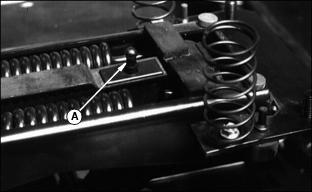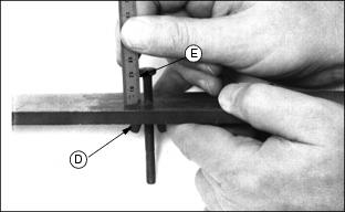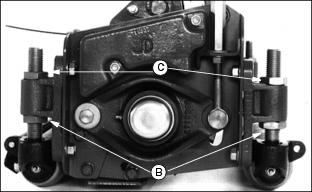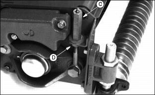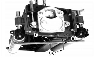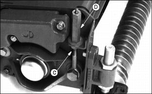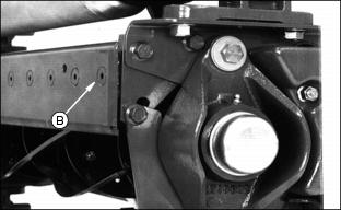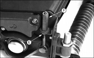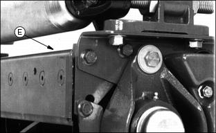 12. Tap both ends of bed knife (E) towards reel with a brass hammer 13. Set the height-of-cut. See Adjusting Height-of-Cut in this section. 14. Adjust the reel-to-bed knife. See Adjusting Reel-to-Bed Knife in this section. 15. Backlap reel. See Backlapping Cutting Units in this section. 16. Check the height-of-cut and adjust as necessary. See Adjusting Height-of-Cut in this section. Adjusting Vertical Linkage