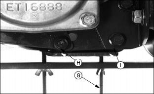 Service Cutting UnitsCheck Ground Conditionsˇ Clear mowing area of objects that might be thrown. Keep people and pets out of mowing area. ˇ Study mowing area. Set up safe mowing pattern. Do not mow under conditions where traction or stability is doubtful. ˇ First, test drive area with PTO OFF and mower lowered. Slow down when you travel over rough ground. Avoid Injury From Contacting Bladesˇ Before you dismount to unplug or adjust cutting units: - DISENGAGE reel drive by moving PTO switch to OFF position. ˇ Keep hands, feet and clothing away from cutting units when engine is running. ˇ DISENGAGE reel drive by turning PTO switch to OFF position when you are not mowing. Stay Clear Of Rotating DrivelinesEntanglement in rotating driveline can cause serious injury or death: ˇ Wear close fitting clothing. ˇ STOP the engine and be sure PTO driveline is stopped before getting near it. Cutting UnitsNOTE: Refer to Safety section of this manual. Follow recommended precautions and safety practices shown. Adjustments may affect each other. It is important that adjustments be made in the following sequence. 1. Adjust two-bolt gauge bar for desired height-of-cut. 2. Set units for the height-of-cut desired. 3. Adjust the reel-to-bed knife clearance. 4. Perform the backlapping operation. 5. Readjust reel-to-bed knife clearance. Adjusting Height-Of-CutNOTE: All cutting units must be set at the same height to obtain an even cut. Floating units will not provide a quality cut in grass over approximately 38 mm (1-1/2 in.) tall. 1. Adjust reel-to-knife (see Adjusting Reel-To-Bed Knife in this section). 2. Raise cutting unit and engage transport locks (A) or remove from machine as desired. NOTE: If rollers are adjusted to a position so gauge bar cannot be installed, raise either the front or rear roller or both to allow installation of the gauge bar. 4. To raise rollers, loosen bottom adjusting nuts (B) and turn top adjusting nuts (C) clockwise on each end of cutting unit, alternating back and forth. NOTE: Using a single-bolt adjusting gauge bar will not insure parallelism between rollers and may result in uneven height-of-cut. 5. Loosen wing nut (D). Set height-of-cut by measuring from the top of the gauge to the bottom of the head of the bolt (E). Lock wing nut (D). 6. Hook head of bolt (E) over edge of bed knife. 7. Loosen wing nut (F). Turn bolt (G) until gauge is parallel with bed knife. Measure distance between front (H) and rear (I) of the bottom of the bed knife to top of gauge. Distance should be the same. NOTE: Be sure bolt (G) is not on mounting screw for bed knife. When adjusting rollers, move both ends of roller equally, alternating from end to end. This will keep the adjusters from binding.