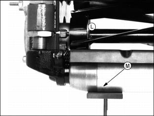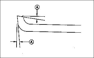 9. On grooved rollers, carefully turn bottom adjusting nut (J) until the first 2 ribs (K) of the machined portion of the roller just touches the gauge. ˇ This is determined by turning the roller and listening for the scratching sound from roller on gauge bar. 10. On solid rollers, carefully turn bottom adjusting nut (L) until the solid center piece of the roller (M) (not the end caps) just touches the gauge. ˇ This is determined by turning the roller and listening for the scratching sound. On rollers with scrapers, a screwdriver can be inserted in slot in scraper, lifted up, and screwdriver handle hooked under reel housing. NOTE: Cutting units with no front roller (fixed position), set rear roller only. 11. After setting front and rear rollers on one end, lock jam nuts and recheck all gauge settings. Readjust if necessary. 12. Follow same procedure for other end of bed knife and rollers. 13. After setting second end, go back and check first settings to be sure they haven't moved. Readjust if necessary. Gauge can snugly be placed into position on either end when properly adjusted. Adjusting Reel-To-Bed Knife ClearanceThis adjustment, combined with the backlapping operation, will ensure a clean cut, as well as reduce wear, take less power, and reduce down time. Reel-to-bed knife clearance should be checked BEFORE and AFTER backlapping. 1. The cutting edge of the bed knife must be sharp and straight, and the relief angle should be 5 degrees (A) as shown. ˇ Otherwise, remove bed knife and bed knife support and have them ground as a complete unit.