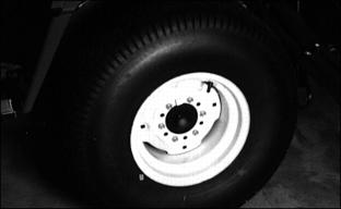 Service MiscellaneousChecking Tire Pressure2. Check tire pressure with an accurate gauge. 4. Keep tire pressure at 62 kPa (9psi) (0.6 bar). Refueling MachineFuel TankFuel tank cap is vented. Use only a vented cap. Fuel Tank Capacity: 75.5 L (20 gal). Fill fuel tank at end of each day's operation. If engine runs out of fuel, fill fuel tank and bleed fuel system. See Bleeding Fuel System in Service-Engine section. Fuel SpecificationsUse Grade No. 2-D fuel at temperatures above 40 Use Grade No. 1-D fuel at temperatures below 40 Use Grade No. 1-D fuel for all air temperatures at altitudes above 1500 mm (5000 ft). For maximum filter life, sediment and water should not be more than 0.10 percent. The cetane number should be 40 minimum. If operating where air temperatures are normally low or where altitudes are high, fuel with a higher cetane number may be needed. Cloud Point weather operation should be 6°C (10°F) below lowest normal air temperature. Filling The Fuel TankFill fuel tank at the end of each day's operation to prevent condensation and freezing during cold weather. Fuel Tank Capacity: 75.5 L (20 gal). 1. STOP engine. If engine is hot let it cool several minutes before you add fuel. 2. Remove any trash from area around fuel tank. 4. Fill fuel tank at end of each day's operation or when fuel gauge shows 1/4 or less fuel in tank. Fill fuel tank only to bottom of filler neck. Fuel StorageNOTE: Diesel fuels stored for a long time may form gum and plug filters. Keep fuel in a clean container in a protected area. Water and sediment must be removed before fuel gets to the engine. Do not use de-icers or depend on fuel filters to remove water from fuel. Install a water separator at the storage tank outlet. See your John Deere distributor for this part. Store fuel drum on side with plug up. Fuel ContainersDO NOT USE galvanized or brass-coated containers to store diesel fuel. Brass is an alloy of copper and zinc. ˇ Specially coated steel containers made for diesel fuel. Tightening Wheel BoltsAfter first 10 hours of operation and every 50 hours thereafter: Tighten steered wheel nuts (small tires) to 81 to 95 Nmm to (70 lb-ft). Tighten drive wheel bolts (large tires) to 136 Nmm (100 lb-ft). Correct Hydraulic Routings