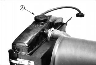 Service Cooling System SafelyDo not remove radiator cap (A) when engine is hot. Shut the engine off and wait until it cools. Then turn the cap slowly to the first stop to relieve pressure before removing it completely. Service Mower SafelyBefore servicing, adjusting, or lubricating machine: ˇ Shut off engine. Remove key. ˇ THEN WAIT until all moving parts have stopped. Hood and fuel tank are heavy. Handle weight safely. Before working on engine, let it cool. Hot engine parts can burn skin on contact. Use a long-handled brush when applying reel-sharpening compound. Keep feet and hands away from cutting units when making adjustments. Always wear gloves when manually rotating reel. Transport latches (A) must be engaged before working on or around raised cutting units, one on each side of machine. Operate with adequate ventilation Turn valve counterclockwise to open. |