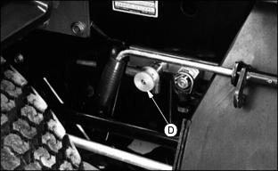 ˇ Make certain all parts are reinstalled correctly if the roll-over protective structure (ROPS) is ˇ The protection offered by ROPS will be impaired if ROPS is subjected to structural damage, is involved in an overturn incident, or is in any way altered by welding, bending, drilling, or cutting. A damaged ROPS should be replaced, not reused. Avoid Injury From Moving Partsˇ Keep hands, feet, and clothing away from power-driven parts. ˇ Never clean, lubricate or adjust machine while it is running. Use Safety Lights And DevicesB - Slow Moving Vehicle Emblem ˇ When transporting your machine on a road or highway at night or during the day, use necessary safety lights. Check local governmental regulations. A safety lighting kit is available from your John Deere dealer. ˇ Keep safety items in good condition. Replace missing or damaged items. Support Raised Fuel Tank