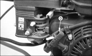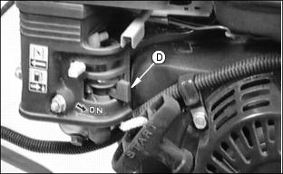 NOTE: If mower will not be used for a long period, close fuel shut-off valve (D) and leave RUN\OFF switch (C) in the RUN position.