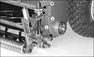 7. Place gauge (I) against bottom of front and rear rollers and bed knife cutting surface.