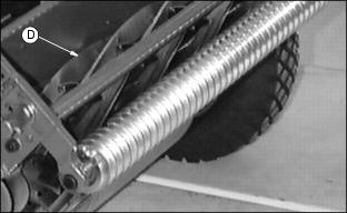 ˇ When properly adjusted and sharpened, each reel blade should cut a piece of paper held at 90° to ˇ Tighten clamp screw (E) on both sides.