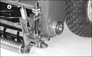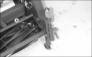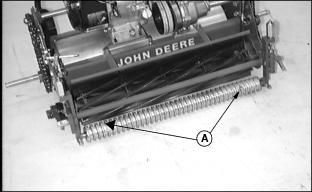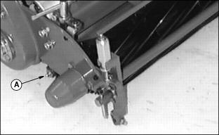 Lubricate reel at point (A) (one each side of mower) with John Deere EP Moly Grease or equivalent SAE multipurpose grease.