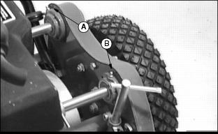 Lubricate input drive to ground (right-hand side) drive chain at point (A) with John Deere EP Moly Grease or equivalent SAE multipurpose grease.