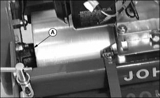 Lubricate rear roller at point (A) (one on each side of mower) with John Deere EP Moly Grease or equivalent SAE multipurpose grease.