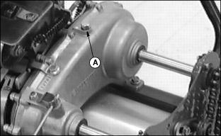 Lubricate input drive to ground (left-hand side) drive chain at point (A) with John Deere EP Moly Grease or equivalent SAE multipurpose grease.