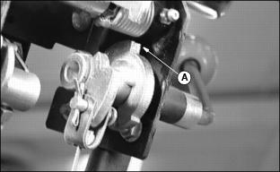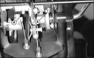 Lubricate drive control linkage at points (A) with John Deere EP Moly Grease or equivalent SAE multipurpose grease.