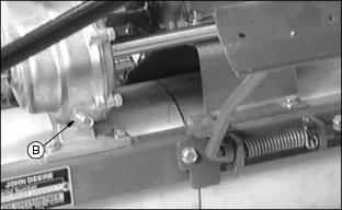 Lubricate input drive to reel drive chain at point (B) with John Deere EP Moly Grease or equivalent SAE multipurpose grease.