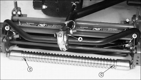 Service - LubricationGreaseUse grease based on the expected air temperature range during the service interval. The following greases are preferred: Chassis and Rollersˇ John Deere Special Purpose HD Water Resistant Grease. ˇ John Deere Multi-Purpose HD Lithium Complex Grease. Cutting Unitsˇ John Deere Cotton Picker Spindle Grease. Other greases that can be used:ˇ SAE Multi-Purpose EP Grease with 3 to 5 percent molybdenum disulfide. ˇ SAE Multi-Purpose EP Grease. Lubricate GreensmowerNOTE: DO NOT over lubricate. Excess grease could fall from mower during operation. Clean grease fitting before lubricating. Replace missing or broken grease fittings immediately. Lubricate Rear Steering Wheelˇ Lubricate rear axle pivot spindle grease fitting (A) with John Deere Special Purpose HD Water Resistant Grease or John Deere Multi-Purpose HD Lithium Complex Grease. ˇ Lubricate rear wheel bearings grease fitting (B) with John Deere Multi-Purpose HD Lithium Complex Grease. Lubricate Neutral Eccentricˇ Raise operator seat and secure in the open position. ˇ Lubricate neutral eccentric grease fitting (A) with John Deere Multi-Purpose HD Lithium Complex Grease. Lubricate Front Lift Arm Pivotsˇ Lubricate right and left lift arm pivot grease fittings (A) with John Deere Special Purpose HD Water Resistant Grease or John Deere Multi-Purpose HD Lithium Complex Grease. Lubricate Center Lift Arm Pivotˇ Lubricate center lift arm pivot grease fitting (A) with John Deere Special Purpose HD Water Resistant Grease or John Deere Multi-Purpose HD Lithium Complex Grease. Lubricate Cutting UnitsLubricate Yoke Pivot, Roller Bearings and Front Rollerˇ Lubricate yoke pivot grease fitting (A) with John Deere Special Purpose HD Water Resistant Grease or John Deere Multi-Purpose HD Lithium Complex Grease. ˇ Lubricate reel roller bearing grease fittings (B) with John Deere Special Purpose HD Cornhead Grease. ˇ Lubricate front roller grease fittings (C) with John Deere Special Purpose HD Water Resistant Grease or John Deere Multi-Purpose HD Lithium Complex Grease. ˇ Repeat procedure for other cutting units. Lubricate Rear Rollerˇ Lubricate rear roller grease fittings (A) with John Deere Special Purpose HD Water Resistant Grease or John Deere Multi-Purpose HD Lithium Complex Grease. ˇ Repeat procedure for other cutting units. Lubricate (Optional) Greens and Turf Conditioner Reelˇ Lubricate both GTC grease fittings (A) with John Deere Special Purpose HD Water Resistant Grease or John Deere Multi-Purpose HD Lithium Complex Grease. ˇ Repeat procedure for other cutting units. Lubricate (Optional) Rear Roller Powered Brushˇ Lubricate both brush grease fittings (A) with John Deere Special Purpose HD Water Resistant Grease or John Deere Multi-Purpose HD Lithium Complex Grease. |