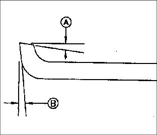 5. Adjust bed knife-to-reel. (See Adjusting 6. Set height-of-cut. (See Adjusting Height-Of-Cut in Operating -Cutting Units section.) 7. Backlap reel. (See Backlapping Cutting Units in this section.) 8. Check height-of-cut and adjust as necessary. (See Adjusting Height-Of-Cut in Operating - Cutting Units section.) Grinding the Bed KnifeNOTE: Bed knife and support assembly can be ground as a complete unit. When grinding the bed knife, it is important to have a 6.5° relief angle on the top surface (A) and a 5° relief angle on the front surface (B). Adjusting Cutting Unit ShieldNOTE: Keeping the shield close to the cutting blades improves the performance of the grass catcher in most conditions. 1. Loosen two bolts (A) and lock nuts on each side of cutting unit. 2. Raise or lower shield to desired position. ˇ Maintain an approximate 1.5 mm (0.06 in.) clearance between the bottom of the shield and the top of the cutting blades. Backlapping Cutting Units