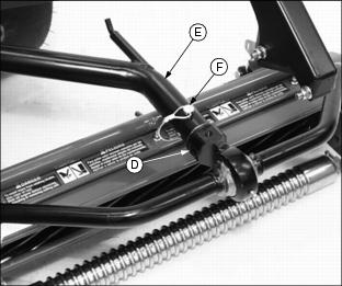 16. Use water to thoroughly wash off all reel sharpening compound while cutting reels are turning in reverse. 17. Move Mow/Transport lever to the TRANSPORT ) position. 18. Push down Forward/Reverse control knob. 19. Adjust cutting reels to desired operating speed. (See Adjusting Cutting Reel Speed in the Operating -Cutting Units section.) |