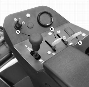 ˇ For mowing greens, set the speed control knob (A) to the highest setting