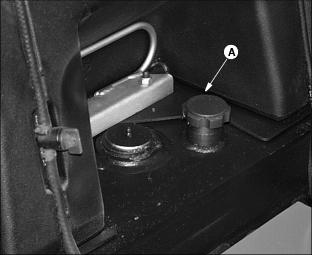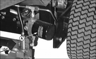 Service TransmissionTransmission And Hydrostatic OilUse oil viscosity based on the expected air temperature range during the period between oil changes. John Deere HY-GARDŽ is recommended. Other oils may be used if they meet the following: Use type F Automatic Transmission Fluid or John Deere All-Weather Hydrostatic Fluid. Checking Hydraulic Oil Level2. Lower cutting units to the ground. 4. Check oil level when oil is cold. NOTE: Fill tube is behind seat. 5. Pull dipstick (A) out to check oil level. 6. If oil level is low, add John Deere HY-GARD oil or an equivalent. (See Hydostatic Drive Oil in this section.) Change Hydrostatic Drive OilNOTE: Drain plug is located left rear of machine below fuel tank. 2. Remove plug (A) and drain oil into a drain pan with at least a 6 gal capacity. 4. Fill reservoir with approximately 20.8 L (5.5 gal) of oil. Use John Deere HY-GARD oil or an equivalent oil meeting John Deere specifications (See Service Hydrostatic Oil in this Section.) 5. Start the engine. Cycle hydraulic control for 1 or 2 minutes. 6. Stop the engine and check oil level. Add oil as necessary.(See Checking Hydraulic Oil Level in this section). Replacing Hydrostatic Oil Filter1. Stop the engine. Engage the parking brake. 2. Turn hydraulic oil filter (A) counterclockwise to remove. Use drain pan to catch dripping oil. 3. Put a film of clean oil on seal of new filter. 4. Tighten filter until it contacts mounting surface. Tighten filter one full turn after gasket contact. A filter wrench may be required. 5. Start the engine and check for leaks. 6. Stop engine and check oil level. Add oil as necessary. (See Checking Hydraulic Oil Level in this section). |