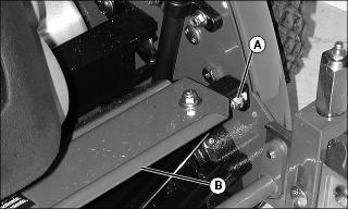 2. Rotate shield (B) 1.6mm to 3.2mm (1/16 to 1/8 in.) reel to reel shield clearance.