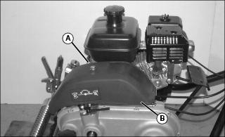 4. Remove cap screw (A) and drive belt cover (B).