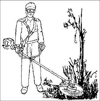 · When cutting with string, cut from left to right with the engine at full throttle, so that clippings will be thrown away from you.